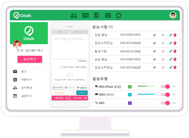 Monitoring on SMS, Push, ARS message. Statistic data shows