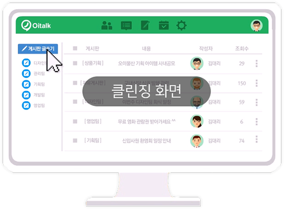 조직 공지를 카테고리 별로 전체공지, 부서공지, 보안공지를 선택해서 발송할 수 있으며 멤버별, 부서별로 오이톡 설치여부에 따라 공지를 문자, PUSH, ARS로 발송합니다.