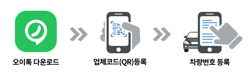 오이톡에서 업체 QR코드 스캔 또는 입력 한번으로 간편하게 등록이 가능합니다.
