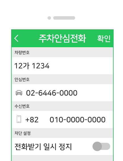 오이톡에서 간편하게 주차안심전화번호 발급 및 부가기능(차단 설정)을 관리할 수 있습니다.