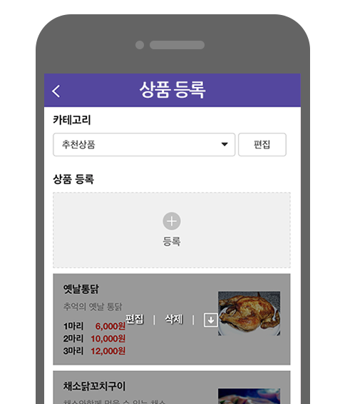 설정>상품등록 메뉴에서 각 제품별 카테고리를 만들어 분류할 수 있으며, 손쉽게 상품을 등록하고 편집 할 수 있습니다.